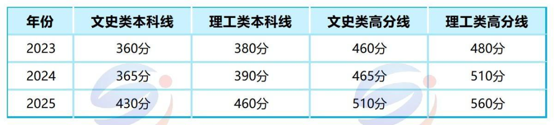 文化分门槛抬高:不仅普通类本科线大幅上涨,艺术和体育类的门槛也水涨船高。2025年艺术、体育类文史类本科线提高至330分,理工类为360分。