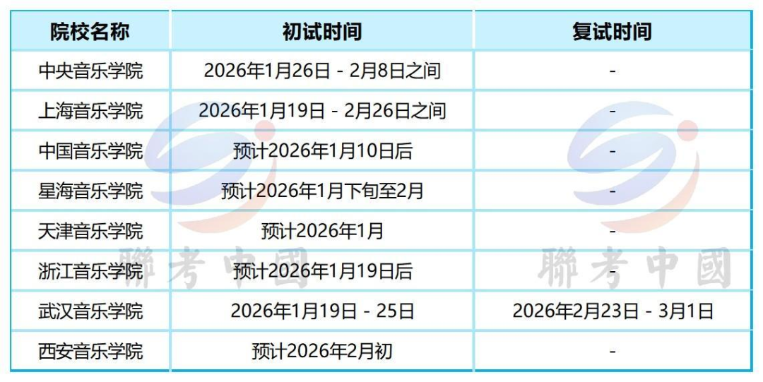 目前,多所艺术类高校已陆续公布2026年校考时间。为帮助大家更高效地规划备考与行程,我们整理了音乐类、美术类重点院校的校考时间表,并附上录取规则解析与备考建议,供考生参考,建议收藏并分享给有需要的同学。